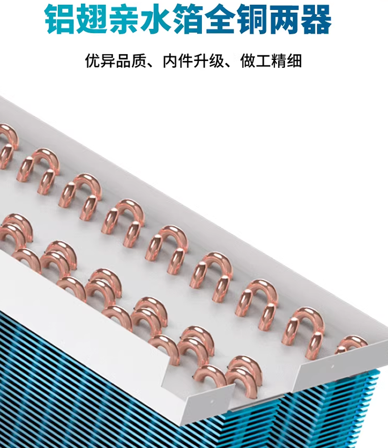 蒸發(fā)器冷凝器: 鋁翅親水膜 ,冷凝器/蒸發(fā)器,防污漬清潔能力,0.1mm親水鋁箔材料,快速冷凝,效率大幅度提升,內(nèi)螺紋銅管,大大提升了系統(tǒng)能效。